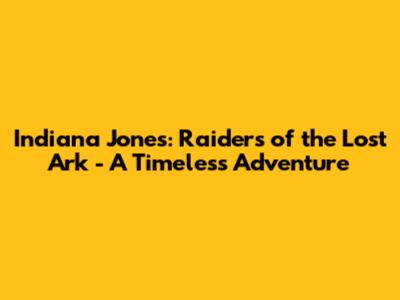 Indiana Jones: Raiders Of The Lost Ark - A Timeless Adventure
